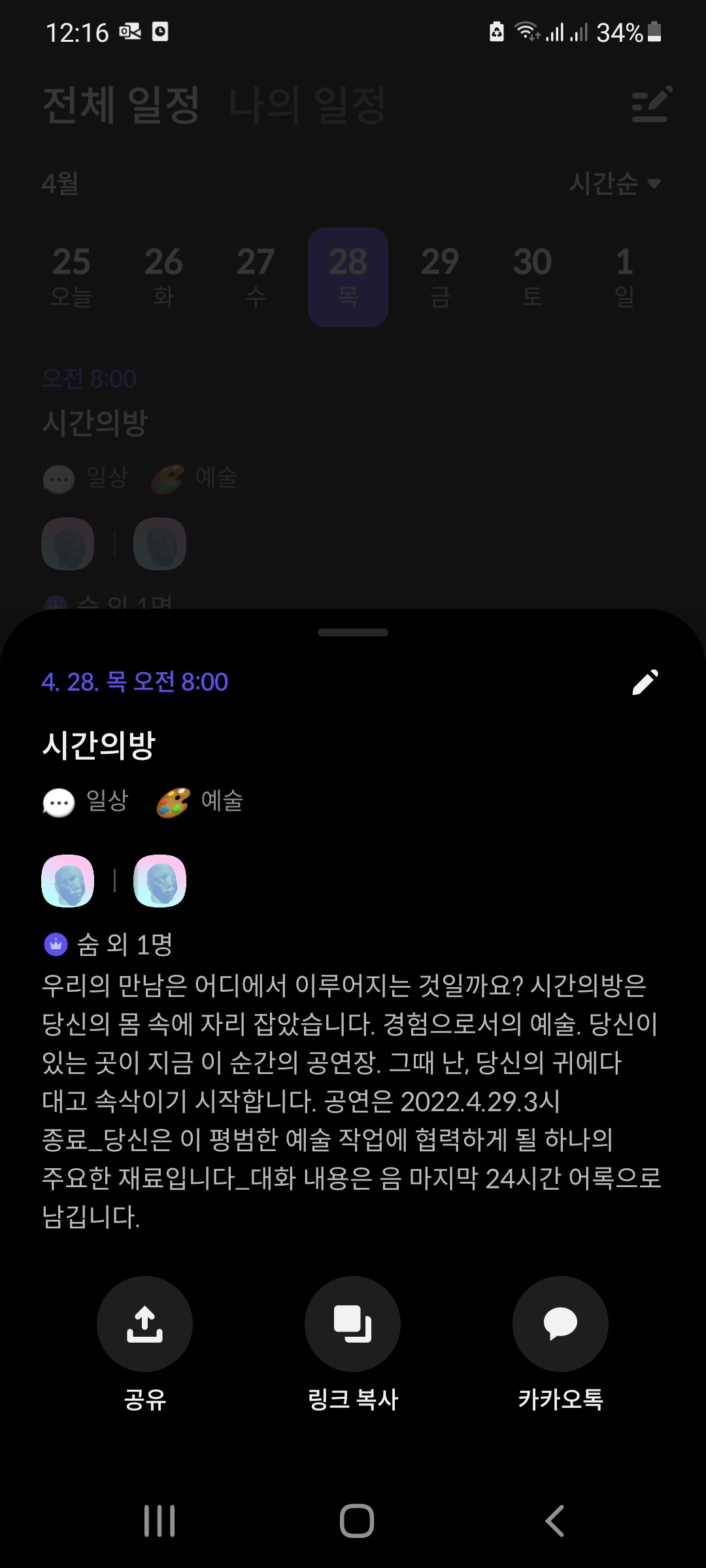 우리는 시간의방에서 만남을 가집니다.