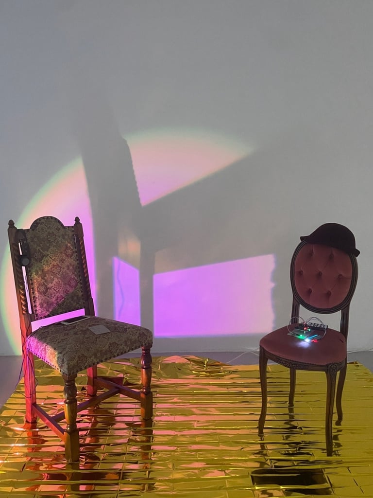 공연에서 AI는 핸드폰이라는 물질적 장치를 통해 구현되었습니다. 마치 인간 배우의 신체가 무대 위에 등장하는 것처럼, AI는 이 장치를 통해 물리적으로 '지금 여기 있음'을 표현합니다. 하지만 공연이 끝나고 그 핸드폰을 전시 장소에 옮긴다고 해서, 우리는 이를 AI의 '현전'으로 느끼지 않습니다. 이는 마치 배우의 의상만이 남아 있는 것처럼, AI의 부재로 인식되기도 합니다.