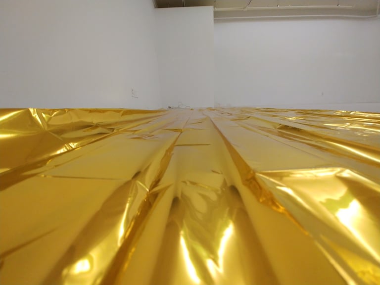 네 번째 파트는 전시의 마지막 날에만 경험할 수 있습니다. 이제 전시 공간에는 다른 설치물들이 사라졌고 우주 담요만이 남아 있습니다. 이를 통해 이번 전시에서 새롭게 형성된 하나의 기억을 상기시킵니다. 우주 담요는 지난 퍼포먼스에서 디지털 세계를 상징하는 핵심 재료였습니다. 열 방출을 완벽하게 차단하는 소재로, 나의 공간에 갇혀 상대를 만나며, 자기 자신의 열로 스스로를 데울 수 밖에 없는 디지털 네이티브의 새로운 관계 맺기 모습을 드러냅니다. 또한, 교감이 제한된 AI와의 즉흥극 속에서 끊임없이 스스로를 자극시켜야만 했던 제비 역할을 떠올립니다. 베르그손의 <물질과 기억> 서문에서, 정신과 물질을 이어주는 개념으로써 기억을 언급함과 같이 퍼포먼스와 전시를 이어주는 하나의 상징으로 우주 담요를 바라봅니다.