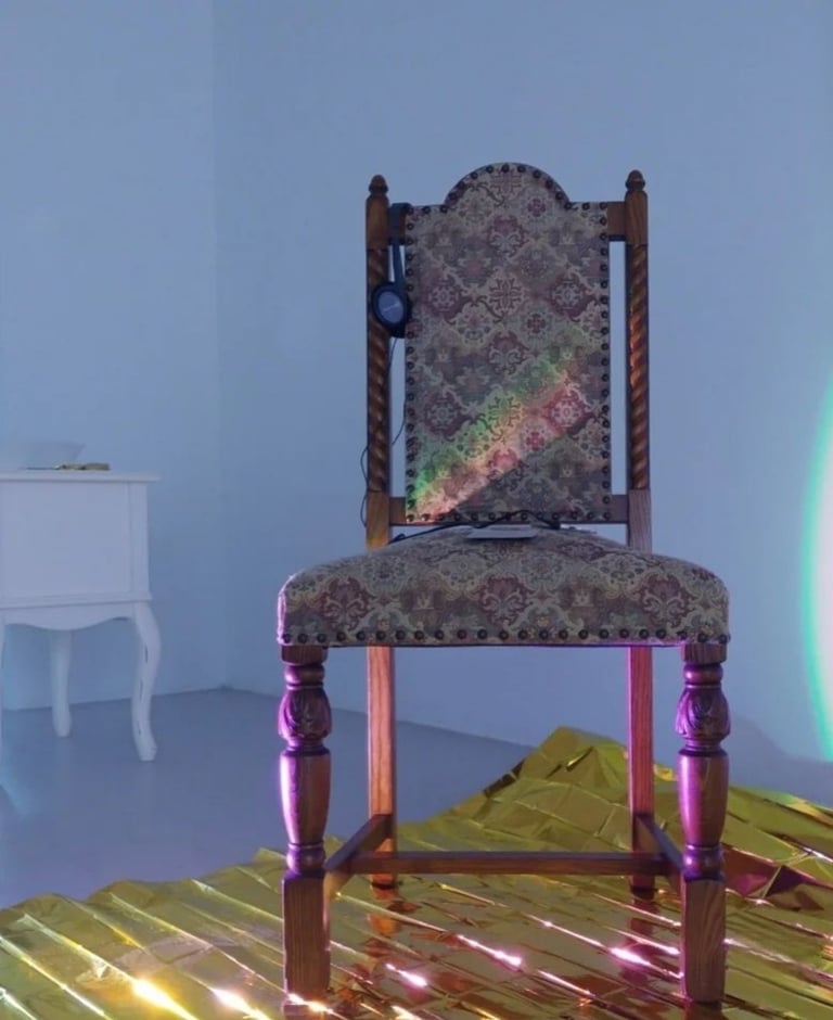 두 번째 파트에서 관람자는 지난 퍼포먼스의 주요 소품들을 접촉합니다. 왕자와 제비의 의자, 제비의 의상과 모자, 핸드폰, 심박수 측정기기가 우주 담요 위에 위치합니다. 관람객은 황금빛의 우주 담요(Space blanket)를 밟고 직접 의자에 앉아 보기도, 사물들을 접촉하기도, 자신의 심박수를 측정하기도 하며, 과거의 공연을 간접적으로 체험합니다.