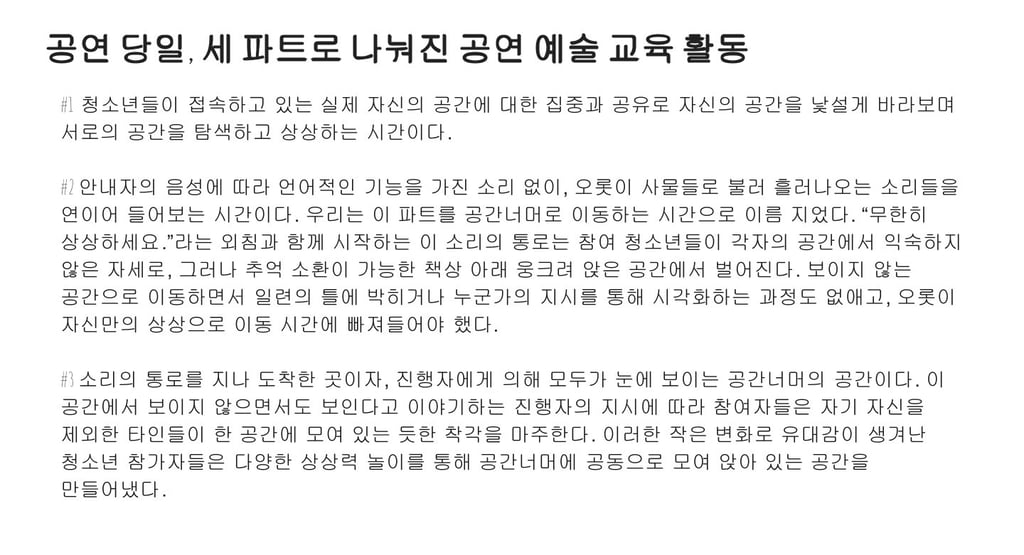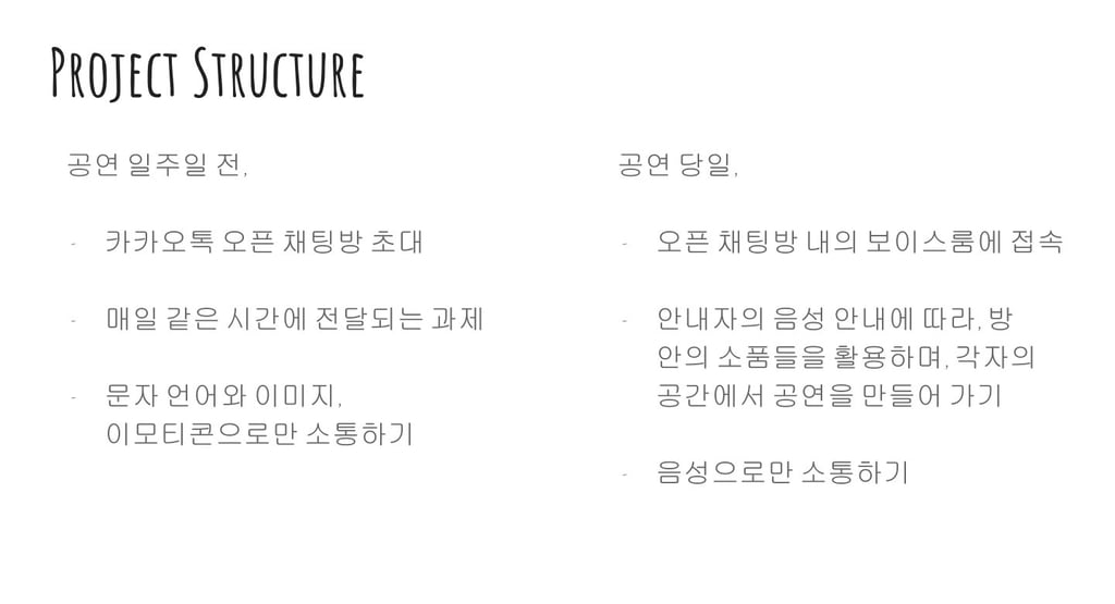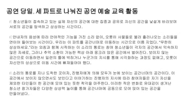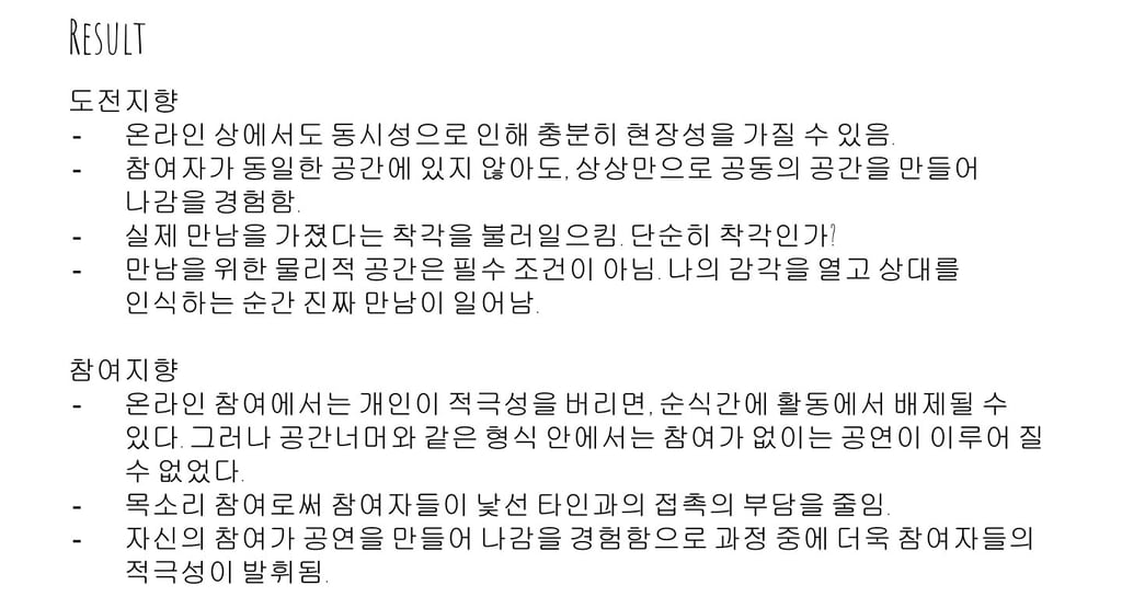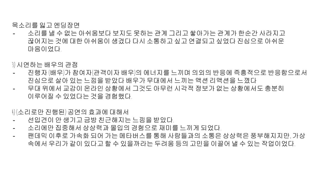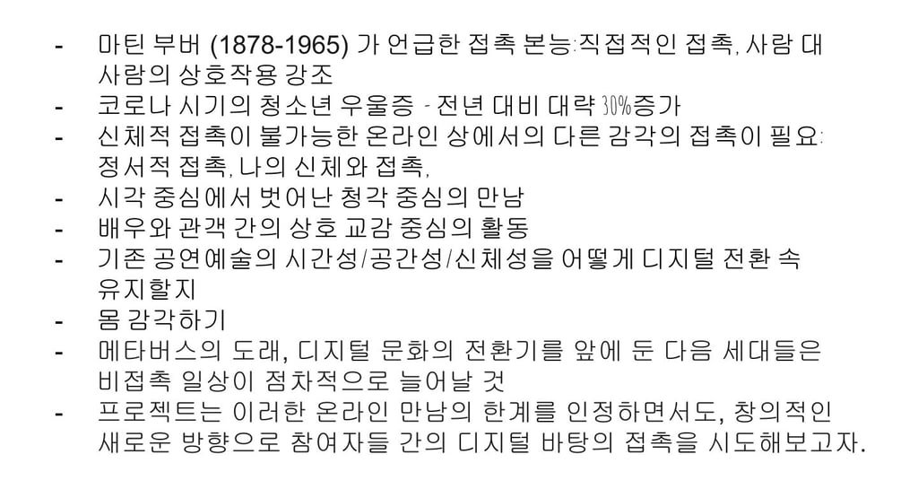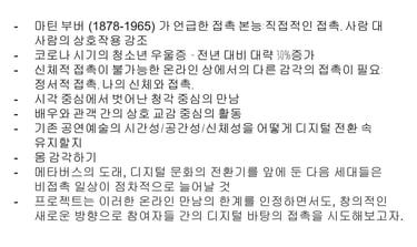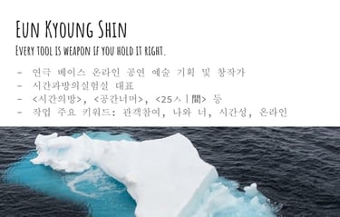 2023년 전주문화재단 문화예술교육 국제교류사업 <모종의 모임>에서 전주-멜버른 예술인들을 대상으로 온라인 강의 및 토론을 진행했습니다. 계속해서 온라인 예술 활동이 활발하게 진행되길 바라며, 발표ppt 공유합니다.