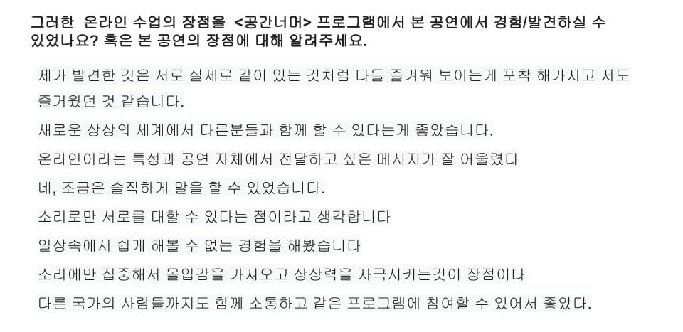 온라인 예술교육 프로젝트 <공간너머> 2022 참여 설문지