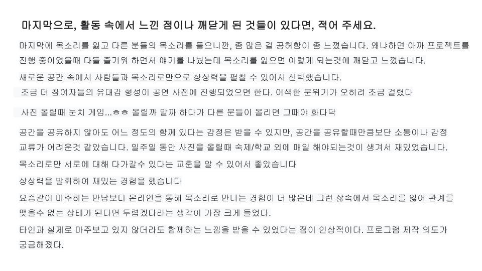ㅇ 활동내용: 온라인 오픈채팅 보이스룸 내, 공연예술 활동